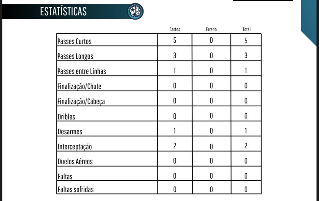 - Controle de riscos: sem faltas e sem duelos aéreos concedidos, manteve a linha compacta e evitou situações desnecessárias de 1×1 em inferioridade.